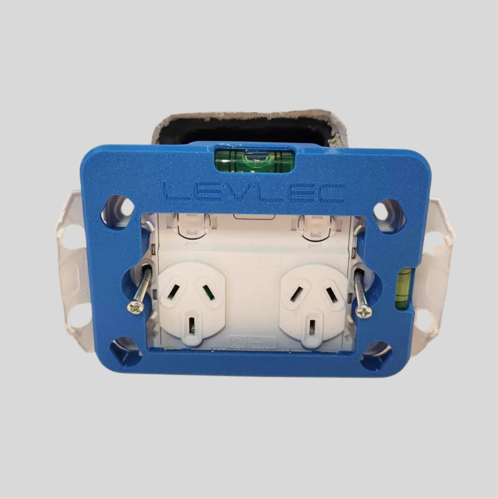 Clips directly onto powerpoints, switches, and outlets for a quick, perfectly level install — while doubling as a precise cutout template for plaster and joinery.