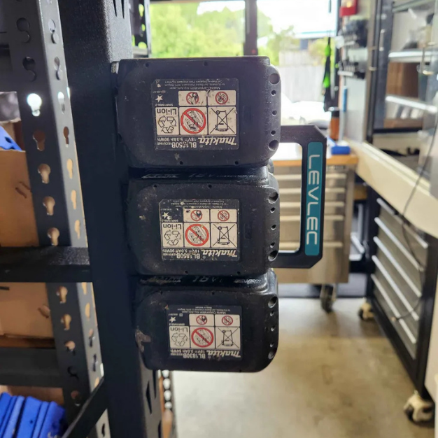 Keeps batteries organised and off the bench β quick access during work and transport