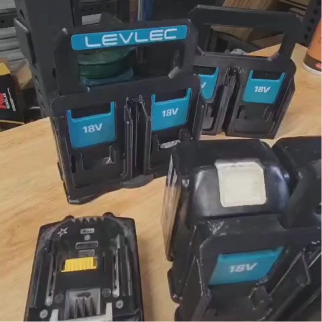 A compact way to carry and store your batteries on site, in the van, or in the workshop. Each carrier keeps your batteries neatly organised with a secure perfect fit, making them easy to grab and move around with while keeping your setup tidy.